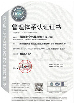企業(yè)主要產(chǎn)品:多功能全自動(dòng)臥式裝盒機(jī) 食品裝盒機(jī) 藥品裝盒機(jī)。浙江拓宇包裝機(jī)械有限公司將本著“以誠(chéng)信為本,用戶至上、生存靠質(zhì)量、發(fā)展靠創(chuàng)新”的經(jīng)營(yíng)于是念;樹(shù)立“用戶需求為已任、客戶利益為初衷”的企業(yè)目標(biāo)。企業(yè)已通過(guò)質(zhì)量管理體系9001認(rèn)證 產(chǎn)品獲得歐盟CE認(rèn)證。歡迎國(guó)內(nèi)外客商蒞臨拓宇實(shí)地考察、洽談和指導(dǎo),拓宇機(jī)械愿與您攜手共創(chuàng)輝煌。